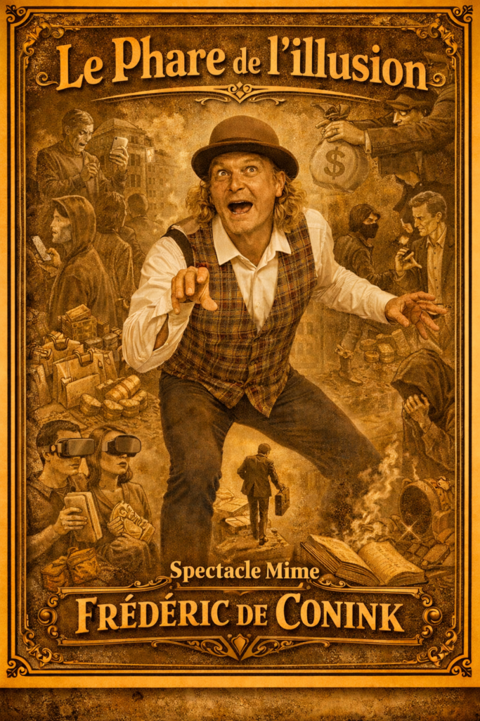 Le Phare de l’illusion est un spectacle de mime qui interroge les travers d’une société en quête permanente d’illusions.